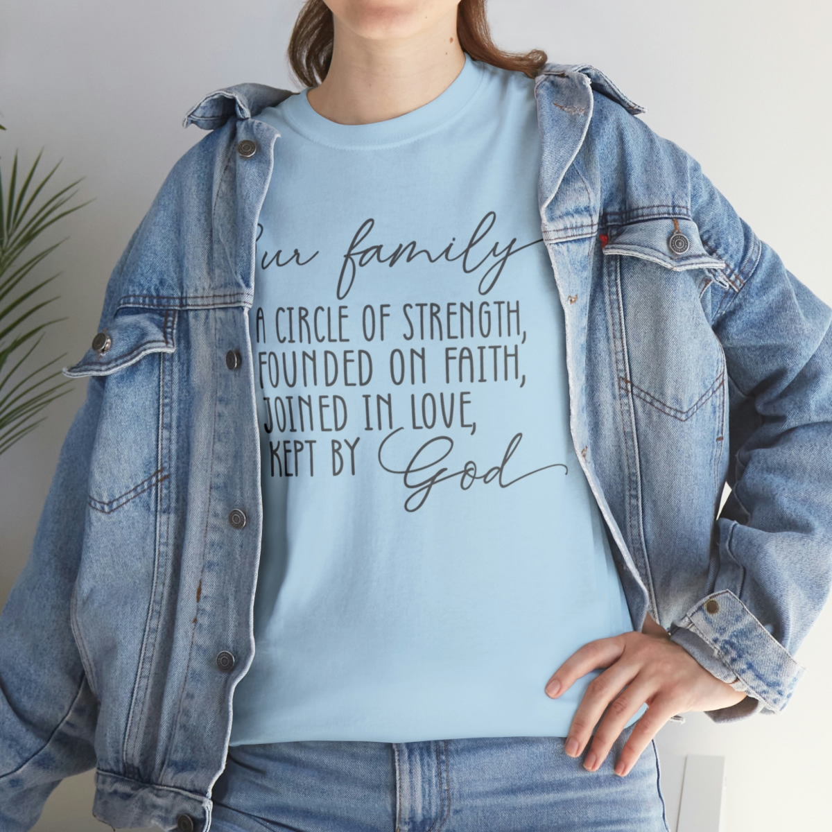 The “Circle of Strength” T-shirt is more than just a piece of clothing – it’s a celebration of familial bonds, faith, and love. Ideal for family gatherings, religious events, or as a thoughtful gift for a loved one. Wear this T-shirt and carry with you the profound message it represents. Order yours today and celebrate the circle of strength that is your family!