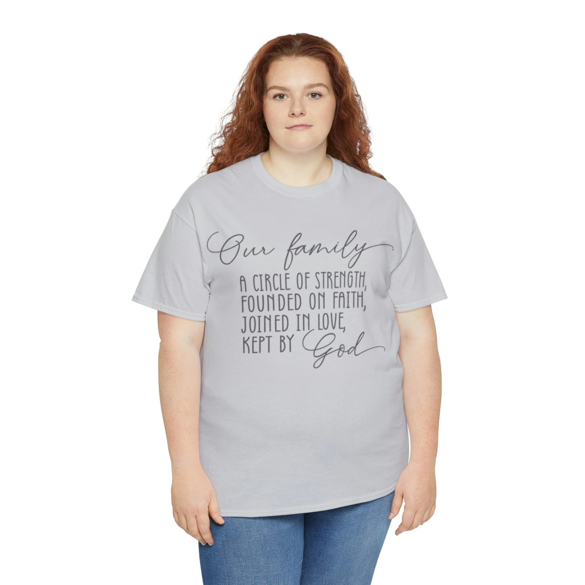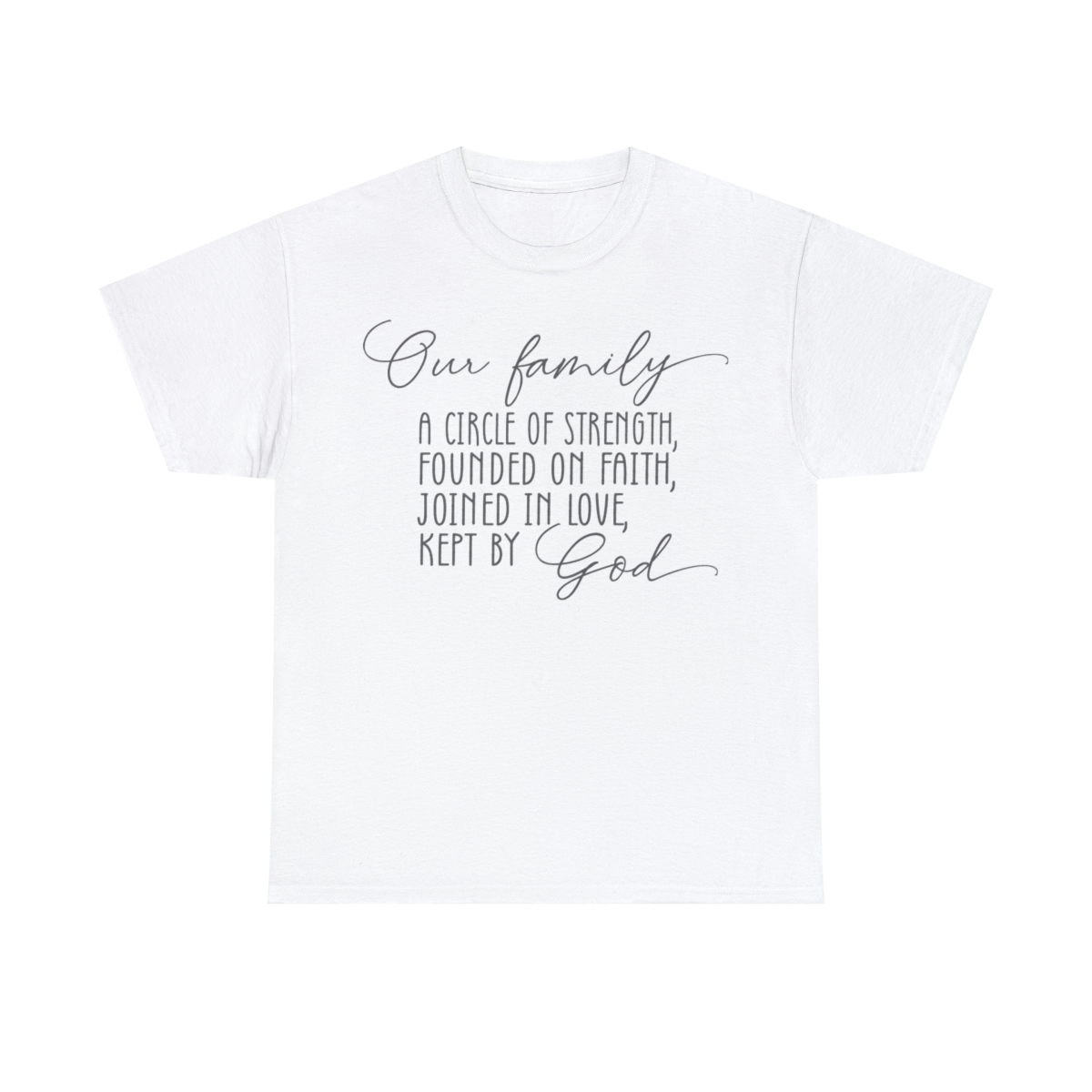 Our Family A Circle of Strength Founded on Faith Joined in Love Kept by God – Unisex Heavy Cotton Tee